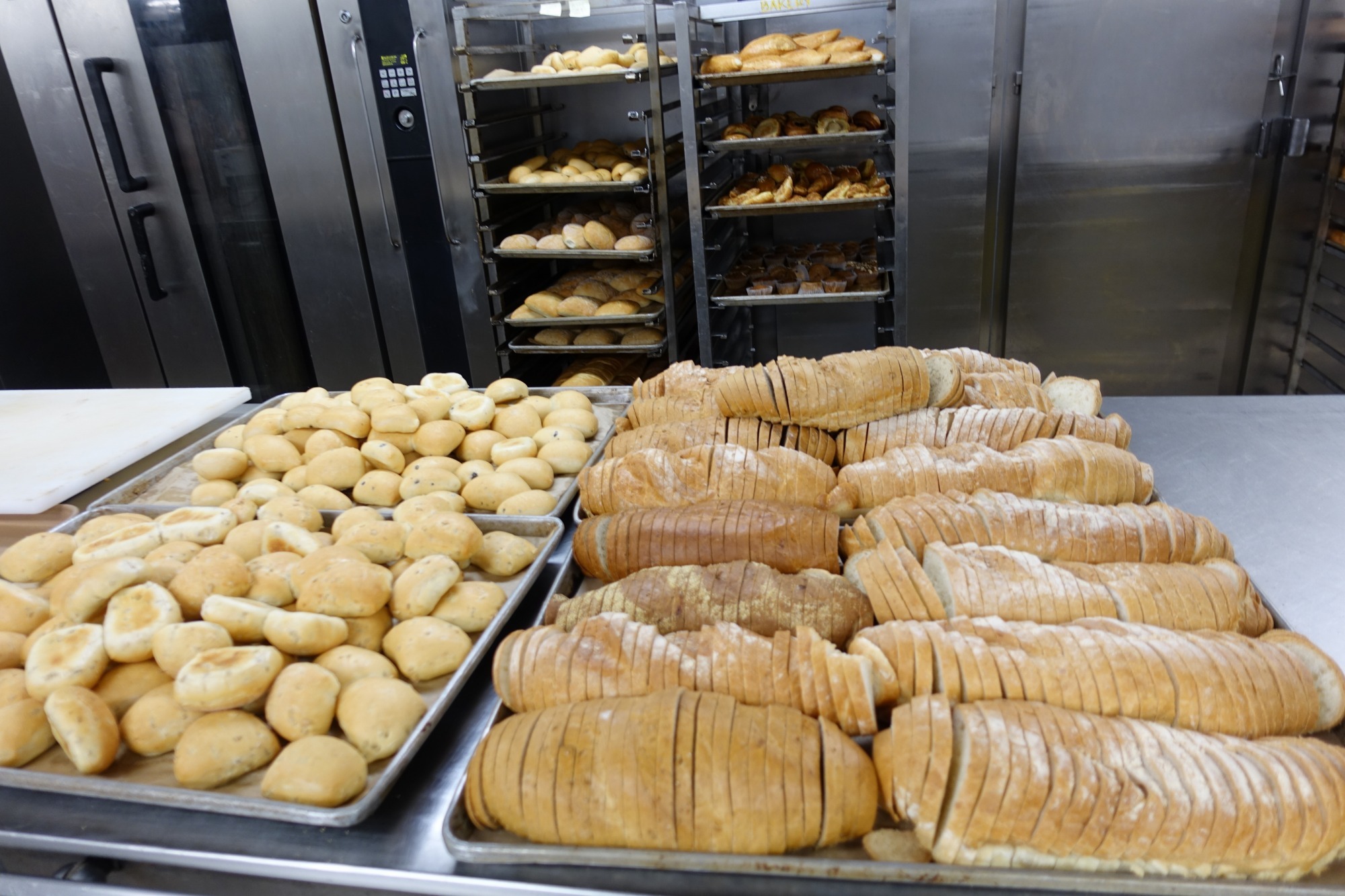 右側のパンは細かくスライスされていて、機械でカットしていると思っていましたが、