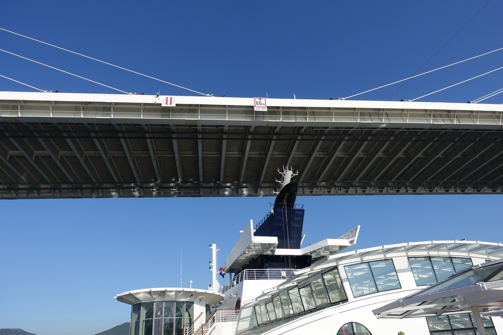 そして、海抜60mの橋をくぐります。本船が橋をくぐるとギリギリに感じます。