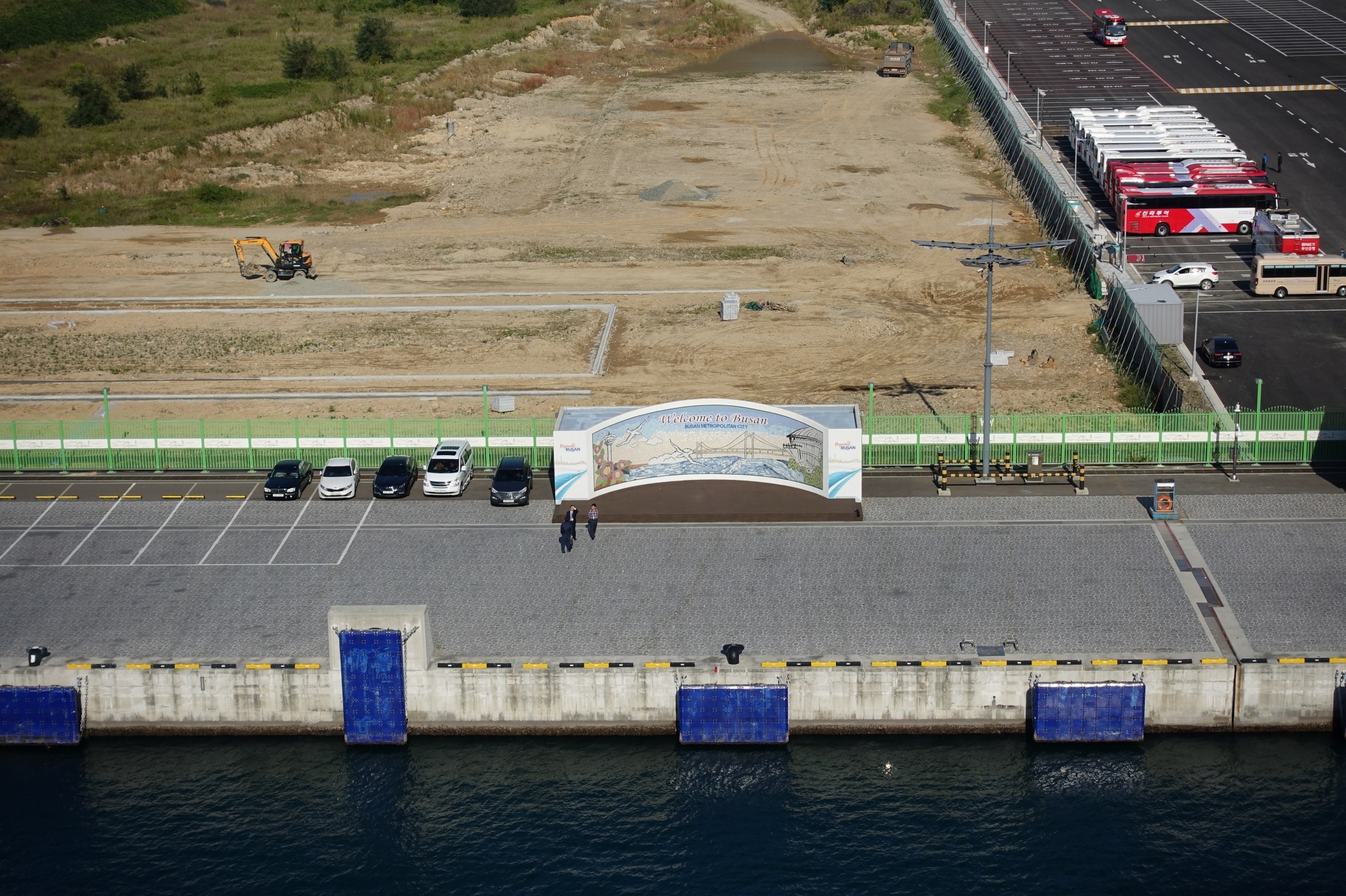写真右上の方に待機しています。釜山が今回クルーズでは初めての外国なので入港審査が