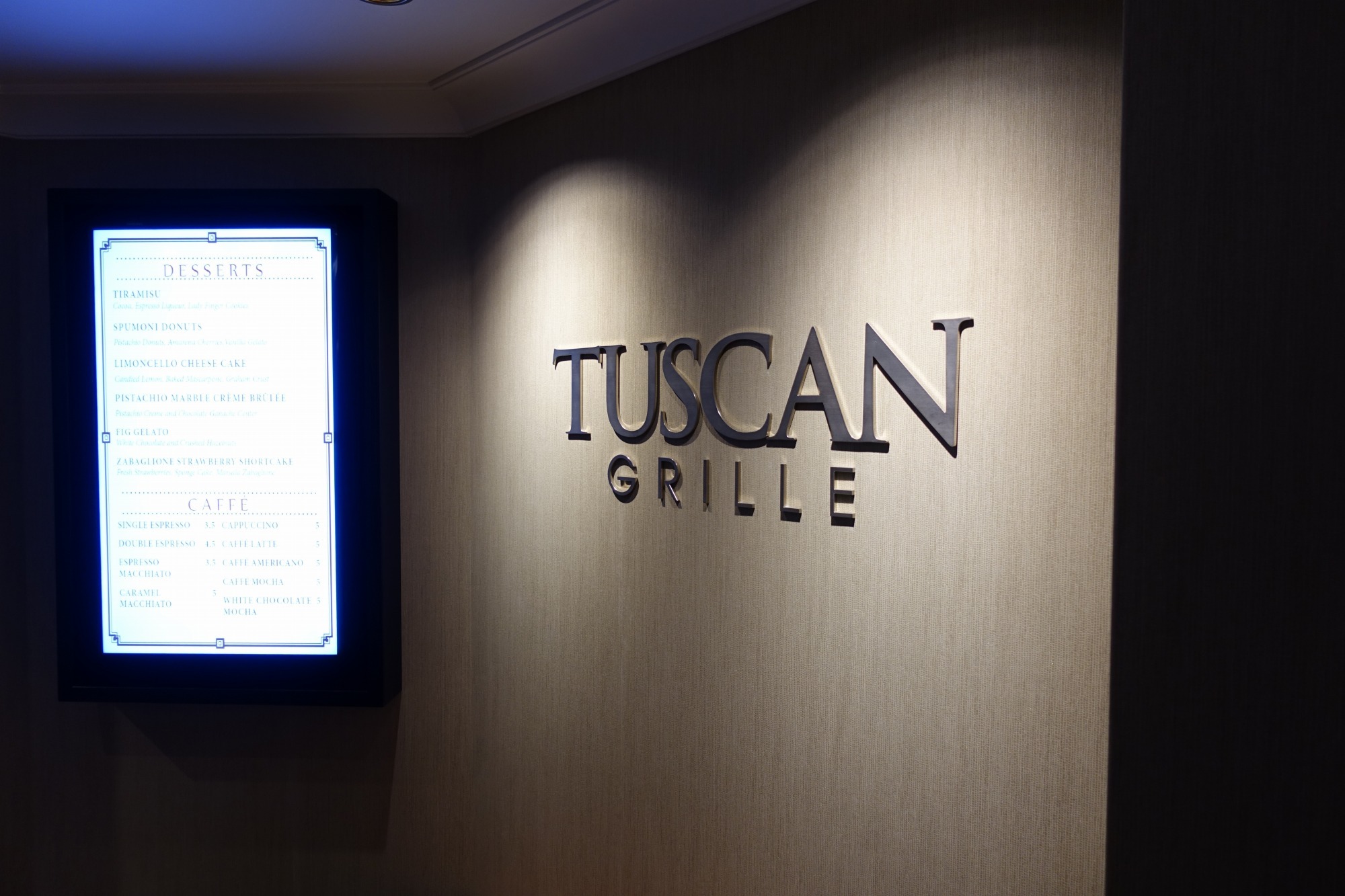 トスカーナグリルは昼と夜にオープンしている有料レストランで、昼夜ともにカバーチャージが45ドルとなっています。
