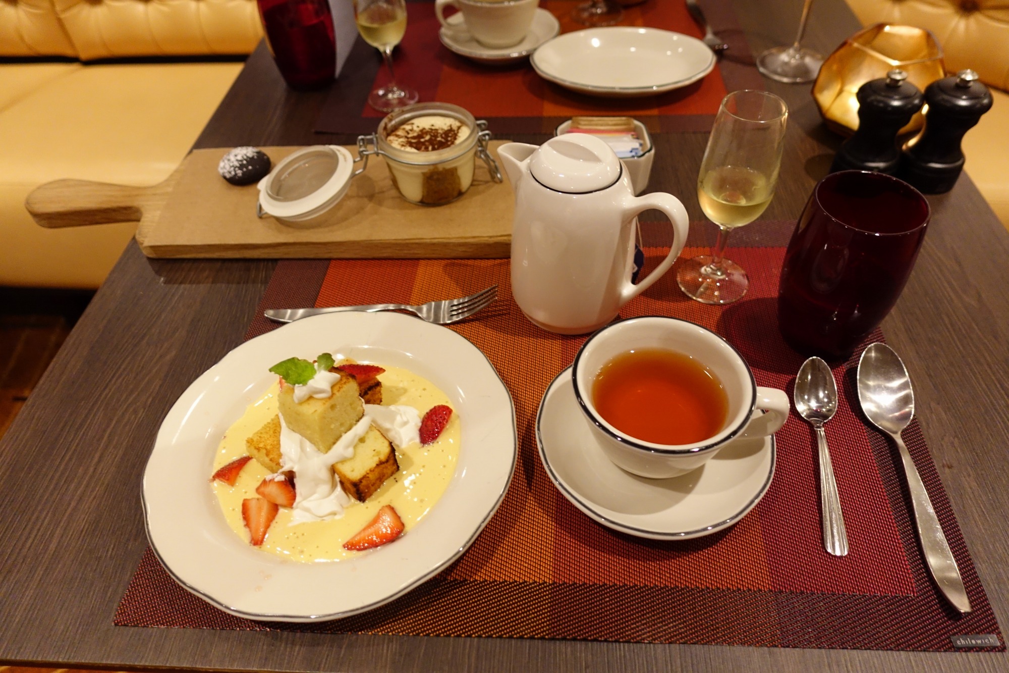どちらも甘すぎず美味しかったです。右奥に見えている白ワインみたいなドリンクは