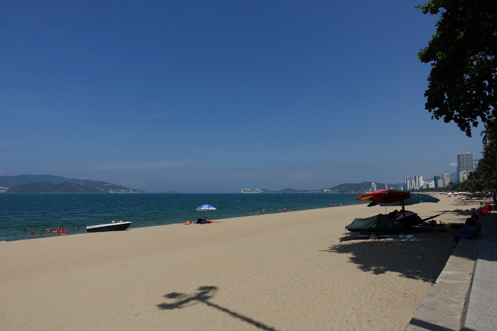 ニャチャンのビーチから撮影した様子。遠方にスペクトラムオブザシーズが見えています。