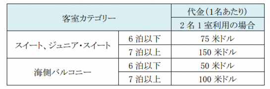 クルーズ期間・ご利用の客室カテゴリーに応じて下記のオンボード・クレジットをプレゼントします。