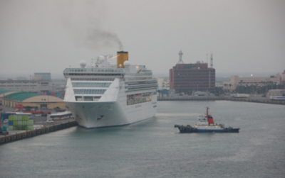 すると対岸にはコスタ ビクトリア(約75,000トン)が一足先に入港するところでした。