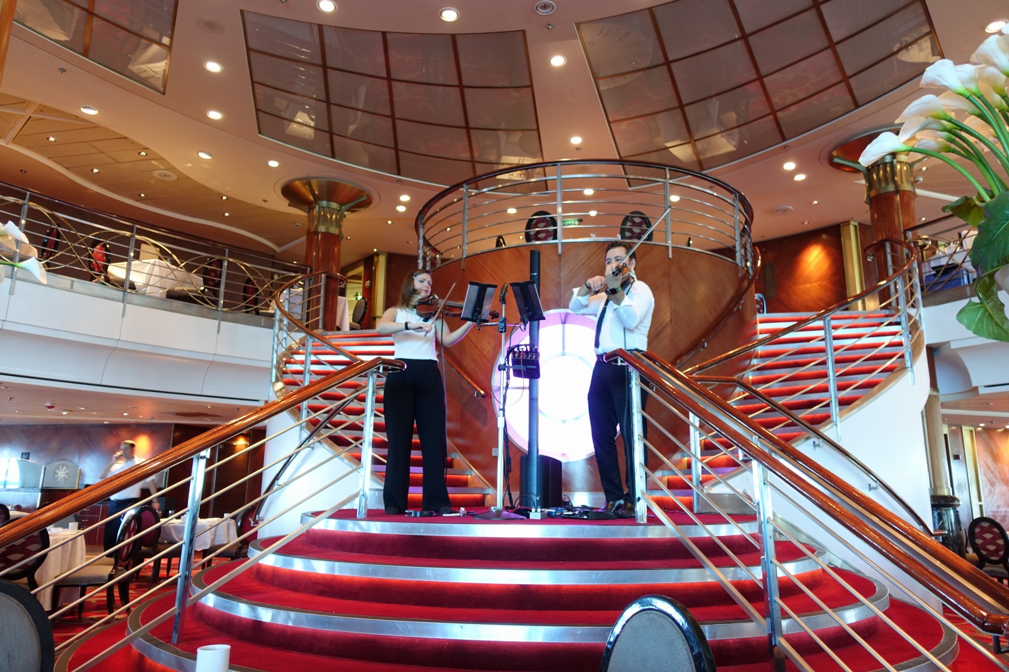 出港時にも港ではギターとアコーディオン奏者のドゥオで演奏をしています。