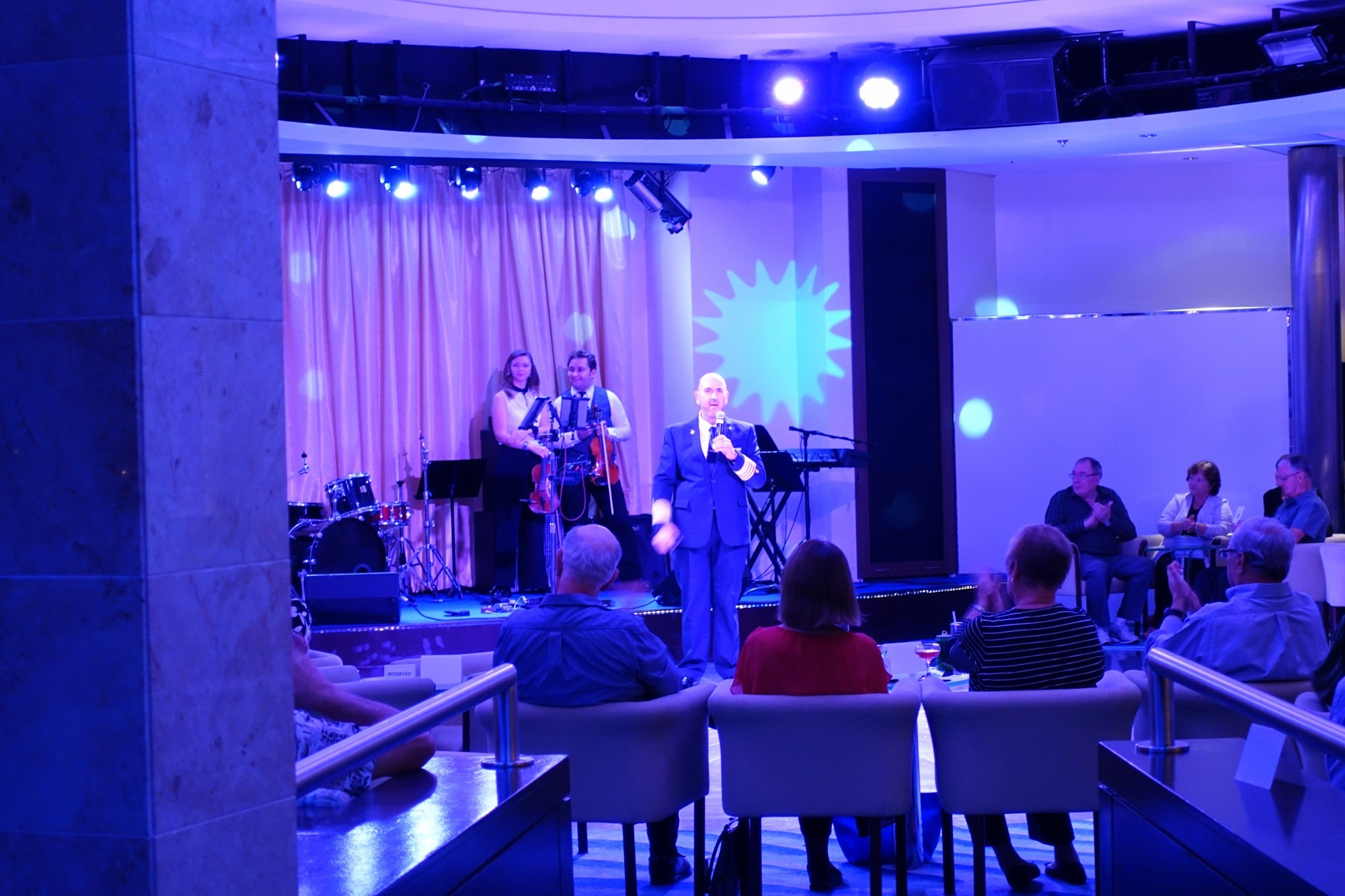 ここでも生演奏の中、キャプテンが今回の乗客の中で一番乗船されている