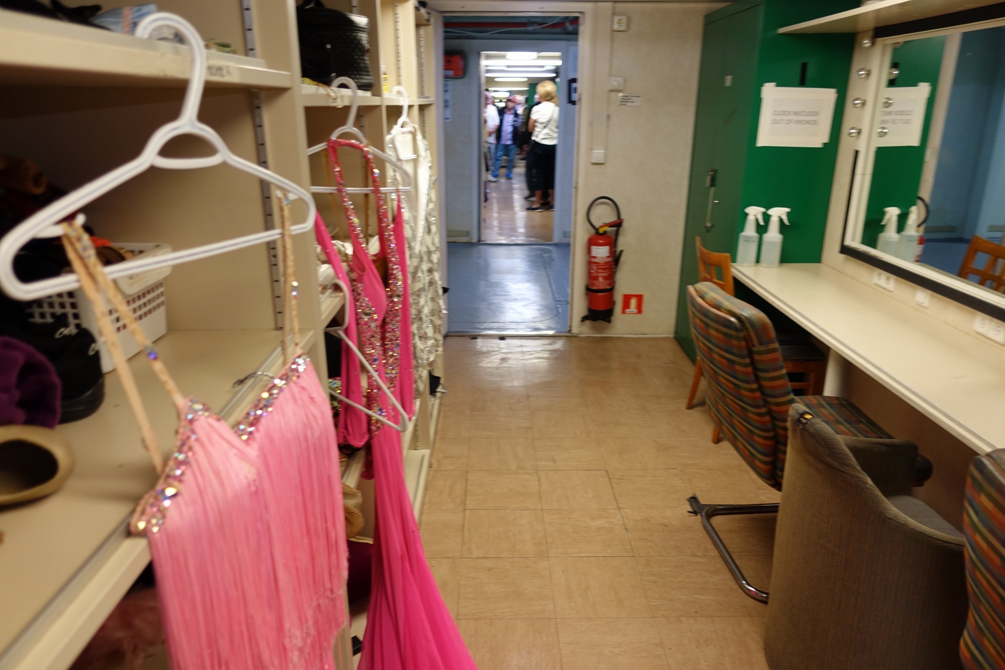 早着替えの衣装はステージ近くの廊下に置かれて準備されています。