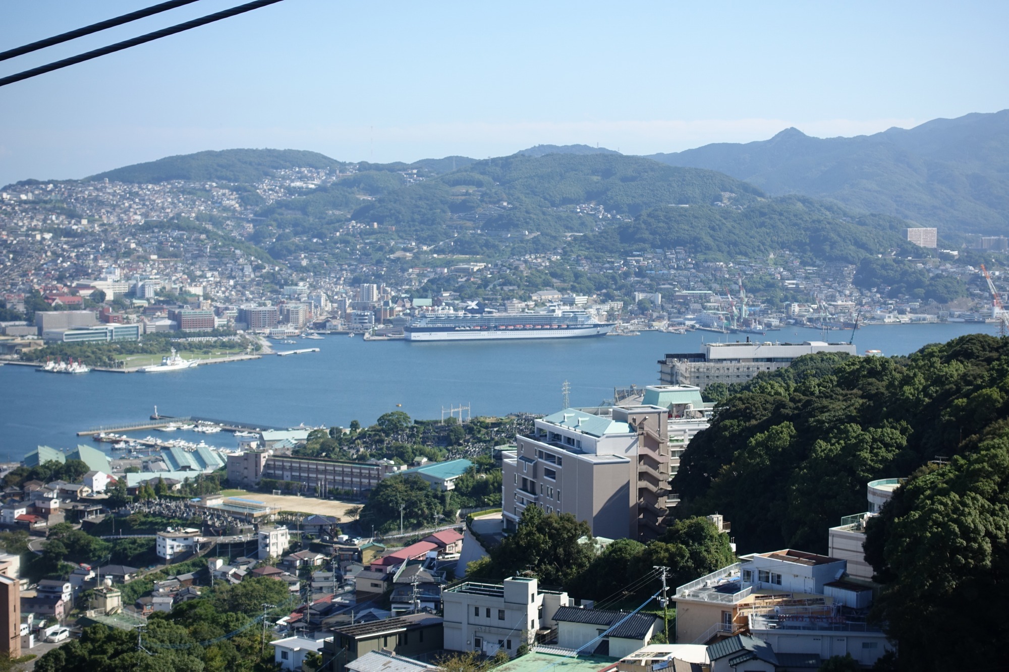 稲佐山にロープウェーで登って、山頂の展望台からセレブリティミレニアムを眺めます。
