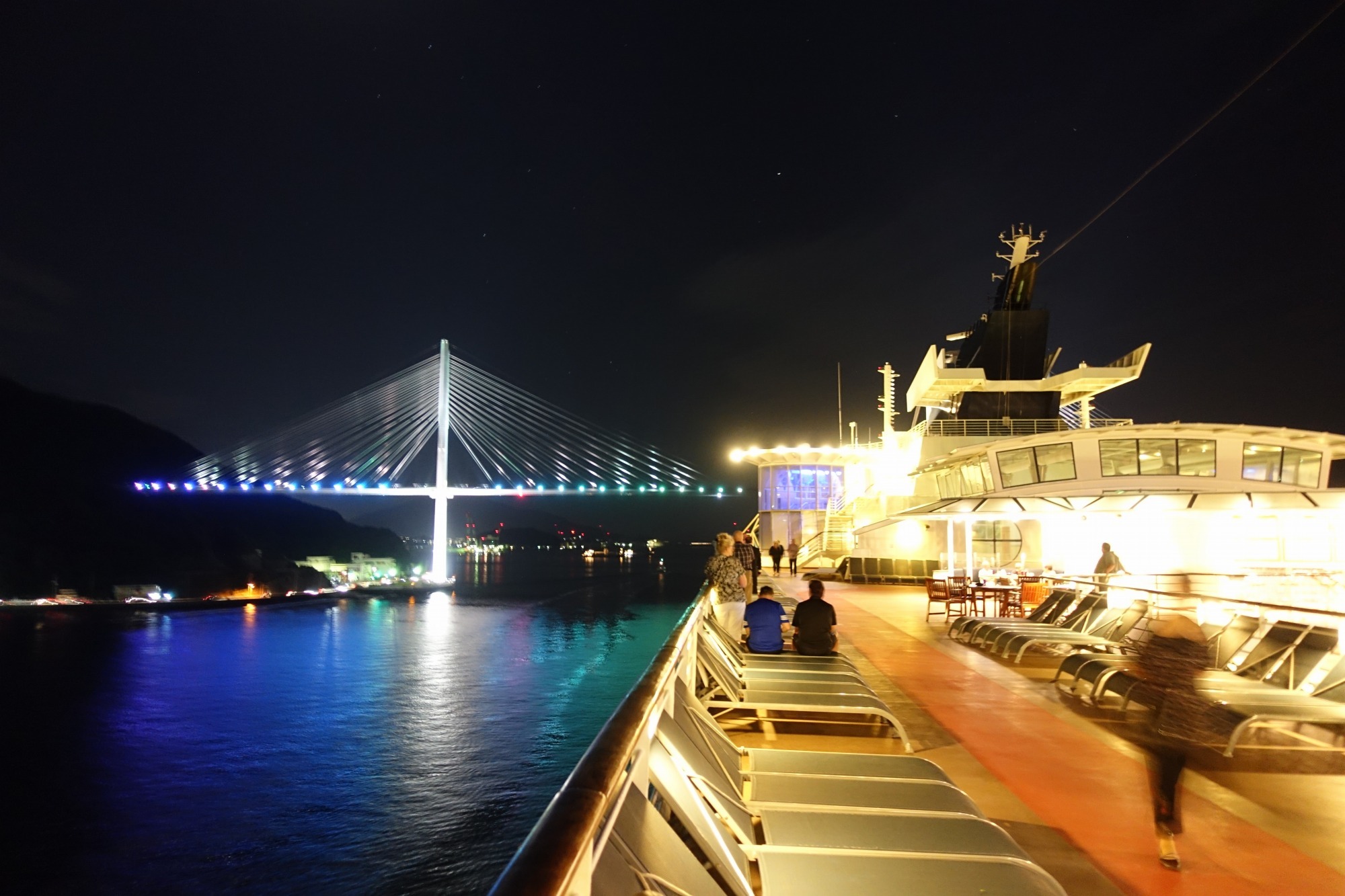 夜になり、出港の時間となりました。 長崎はいつも出港の催しがあったのですが、誰もおらず