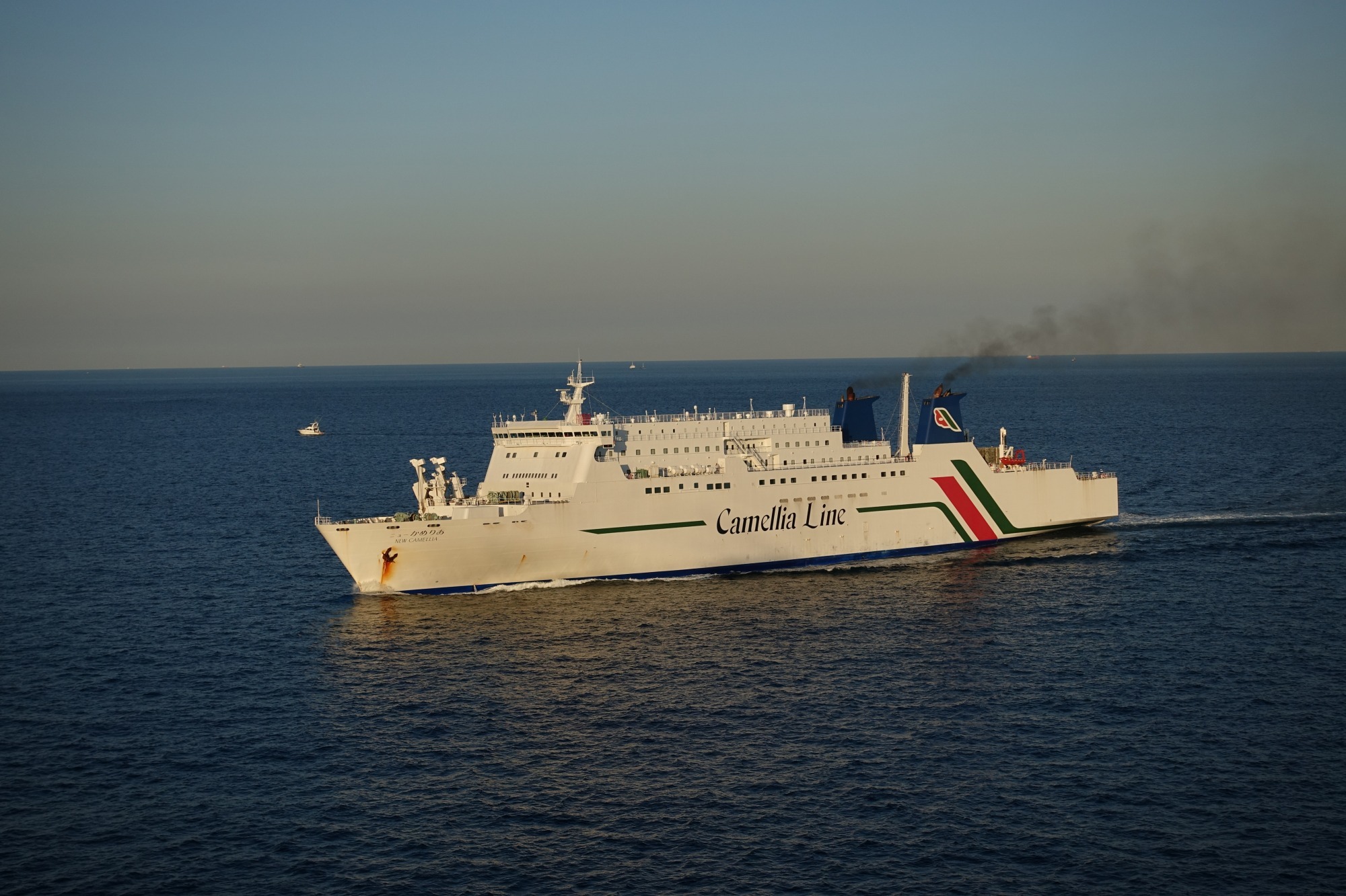 夕刻には日本からのフェリー「ニューかめりあ」が釜山港へ入港してきました。