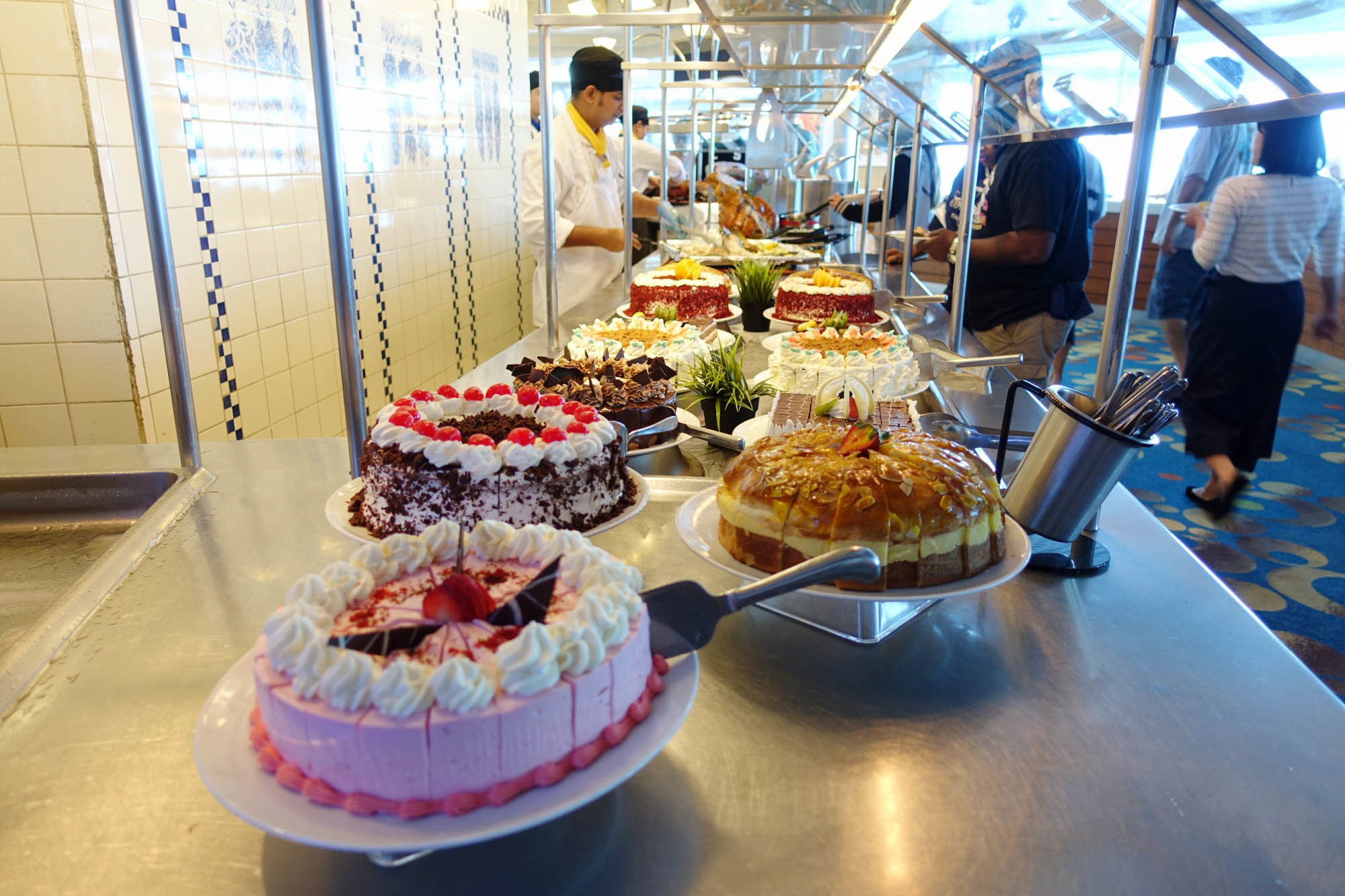 下船日前日はケーキパーティ🎂が行われました。今まで以上に艶やかなマカロンが食べ放題でした。