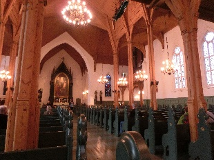 木造造りで内部の梁などが椅子に座って見ることが出来ました。また、パイプオルガンの演奏も聞けてよかったです。