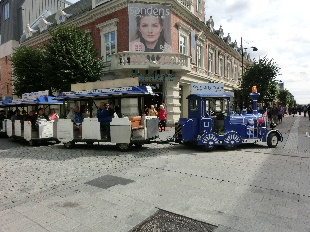 着桟した場所は町のはずれで私たちは町まで周回しているフライトレインという名の汽車の形をした連結した車に乗車しました。