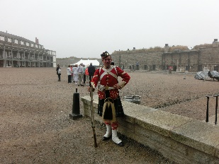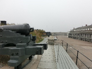 要塞(今も英国が管理している)を目指し丘の上にでも霧で見えない。