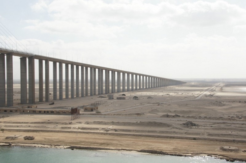 スエズは今も拡張工事が行われていて、前方が二手に分かれているように見えていますが
