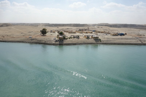 運河の両端は砂漠で、時折工事関係者の建物なのか分かりませんが、