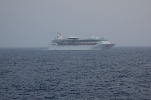 夕方にブリッジからアナウンスがあって、もうすぐ同僚船のラプソディ・オブ・ザ・シーズとすれ違うとの報告がありました。
