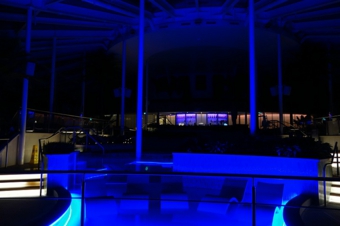 下の写真は若干画角が違いますが、同じソラリウムを夜に撮影したものです。