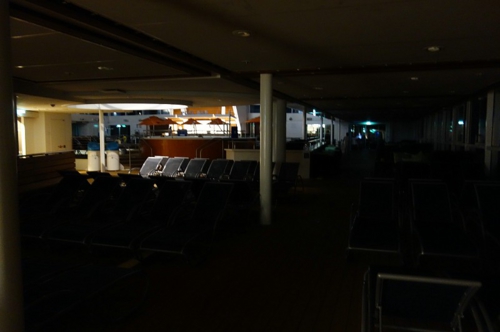 この右側が海側となります。なので船体中央部分は明かりを残しながら、外側の照明は極力落とす形でした。
