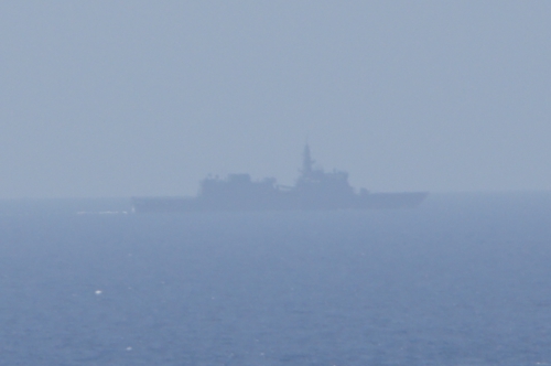 IRTC航行中に海の方を見ると、遠くに薄らと軍艦のシルエットが見えていました。