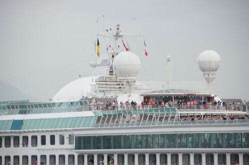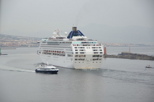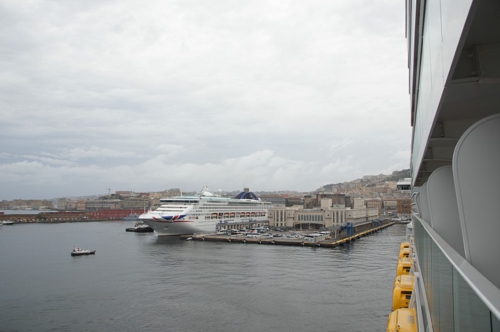 夕刻になって、P&OのOceanaが先にナポリの港を離れます。