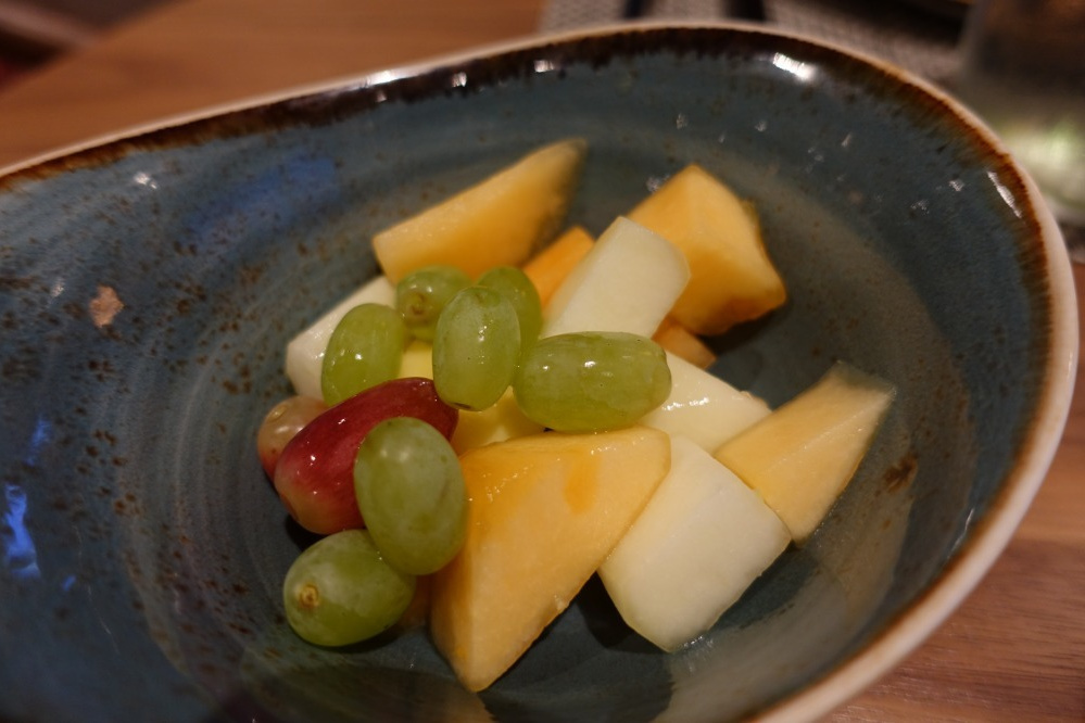 果物の盛り合わせが出されました。辛い料理の合間にお口直しをしてくださいと
