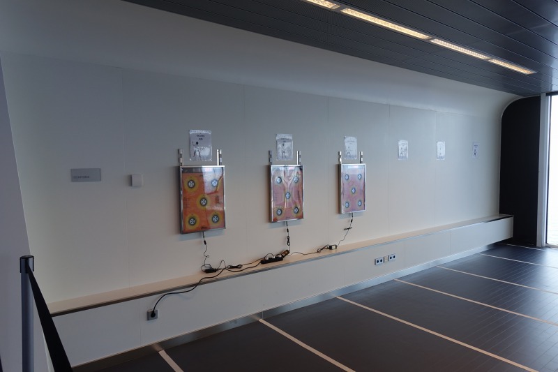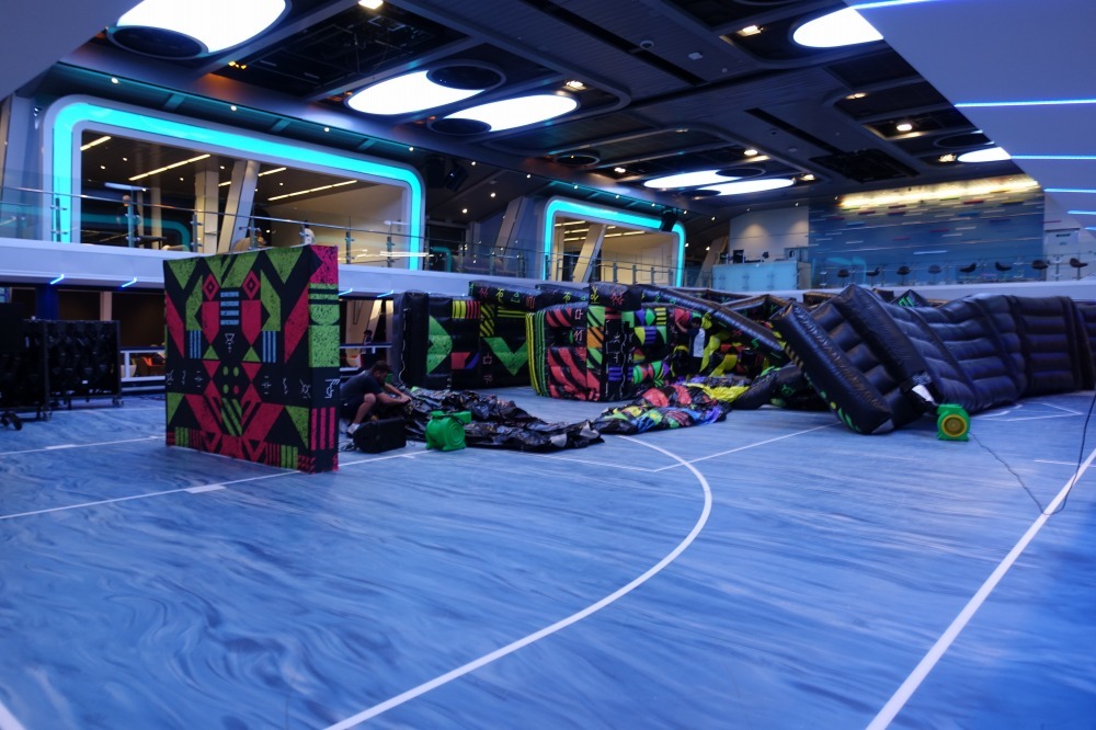 またエアーマットで壁を作って、レーザー光線でシューテイングゲームを体験できる