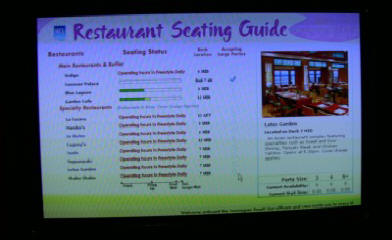 下の写真は全レストランとその込み具合を表示しているモニターです。