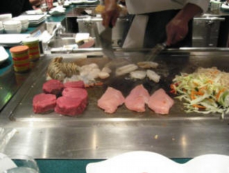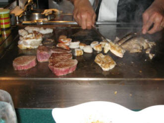 島から戻って、夜の食事は鉄板焼きを予約しました。