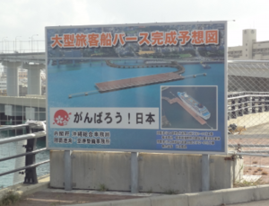 客船バースは工事中でしたが完成予想図が看板になっていました。