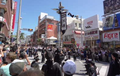 ですが、午後から国際通りを閉鎖して行われた14旗の旗頭の一行が大綱挽行列(うふんなすねーい)を行う場面は見ることが出来ました。