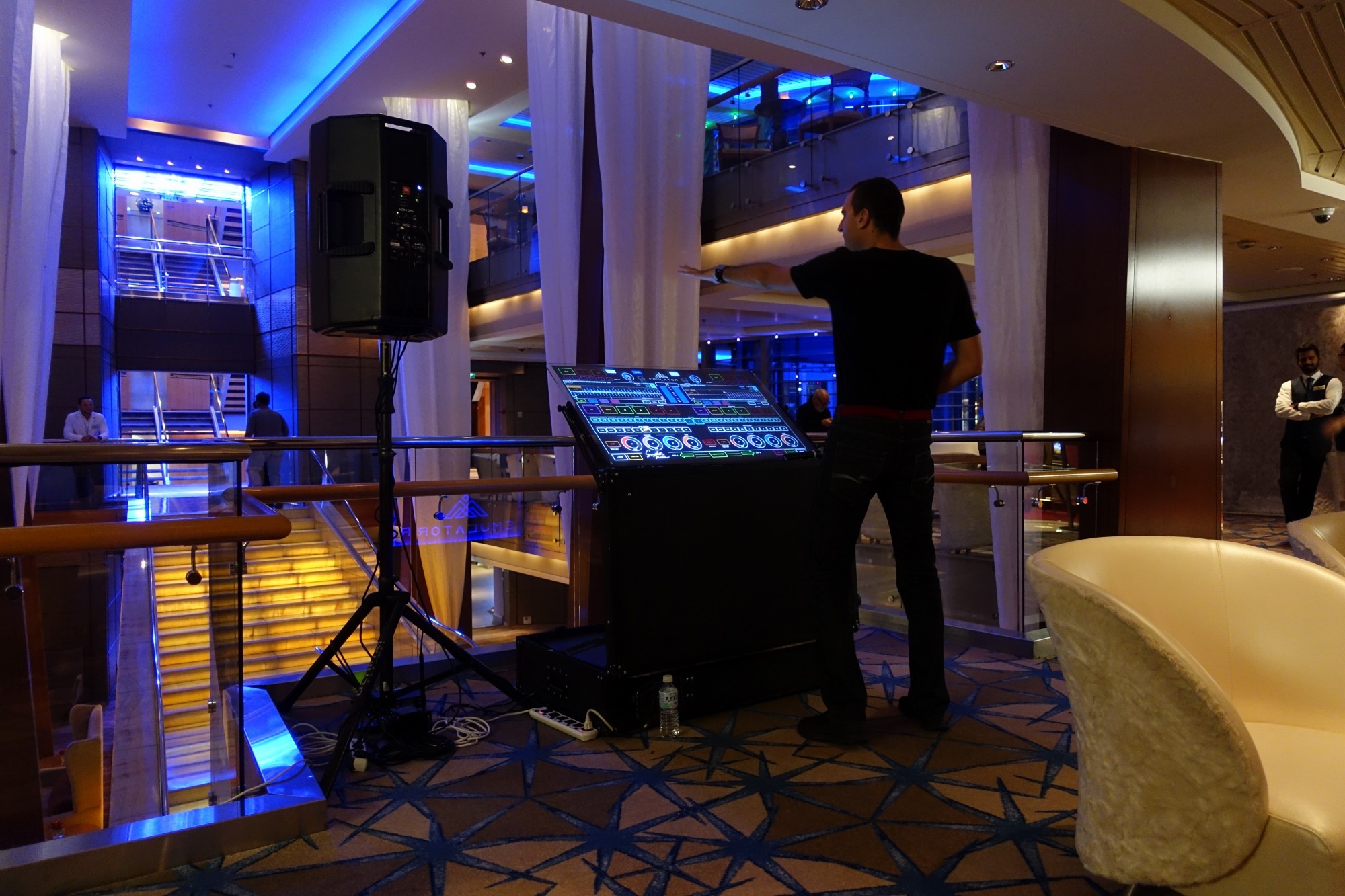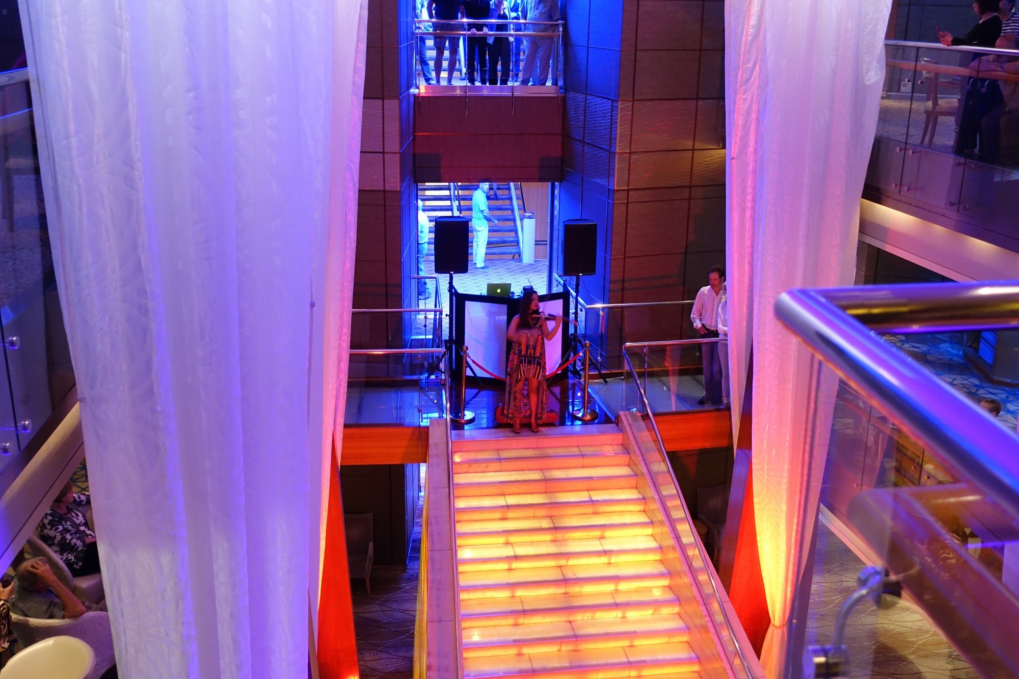 終日航海なので、船でのイベントについて書きたいと思います。ほとんどのクルーズ船で、シアターでのミュージカル、手品、演奏などがもようされてますが、それ以外の日もパブリックエリアやバーなどでも演奏などをしていることがあります。