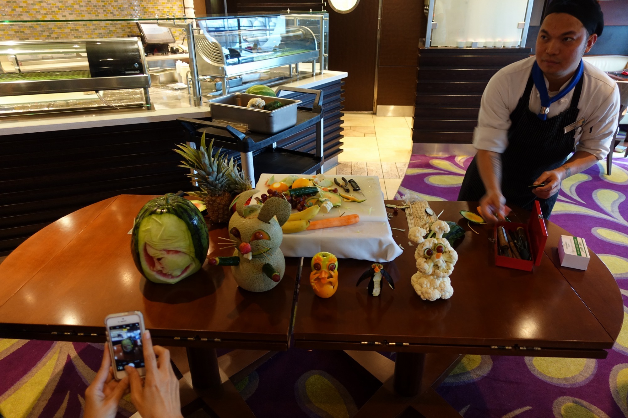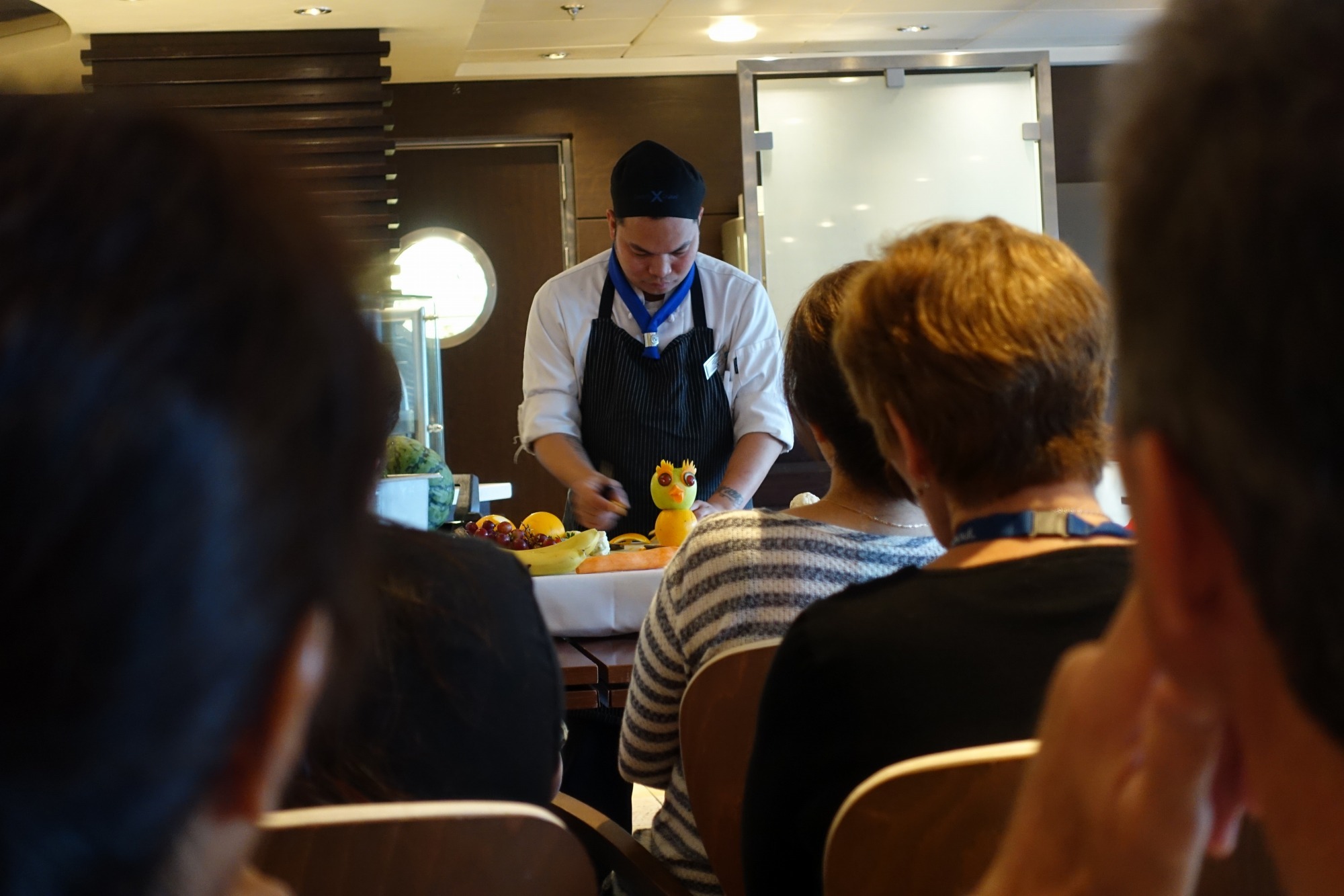 フルーツカービングのショーがありました。フィリピンクルーのコックが一人で色んな動物を描いていきます。