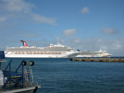 そのため、沖を眺めると手前にカーニバル フリーダム号(11万トン)と本船(9万7千トン)が