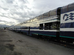 上の写真はアンカレッジ発の5両編成列車ですが展望車やレストランカーも接続されていてクルーズ前後に米国1高い山マッキンリー山の観光や自然が手付かずに保存されているデナリ公園に向かいます。